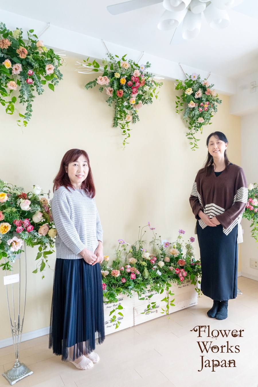 FWJの会員の方々は、どんな場所でどんな風に作品展をされているのかを見て話を聞けることで、将来の花仕事への準備や学びに繋がっているようです。
