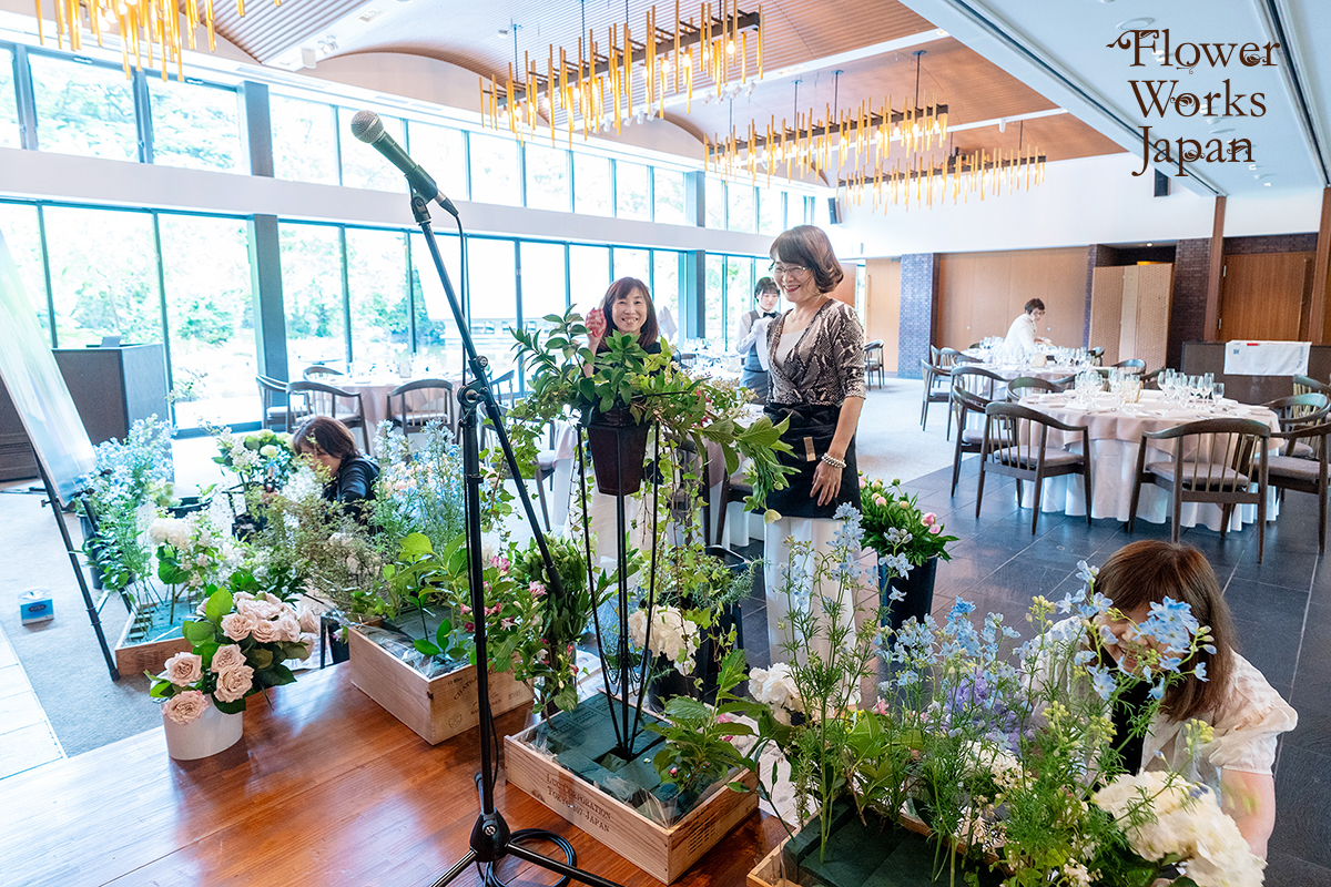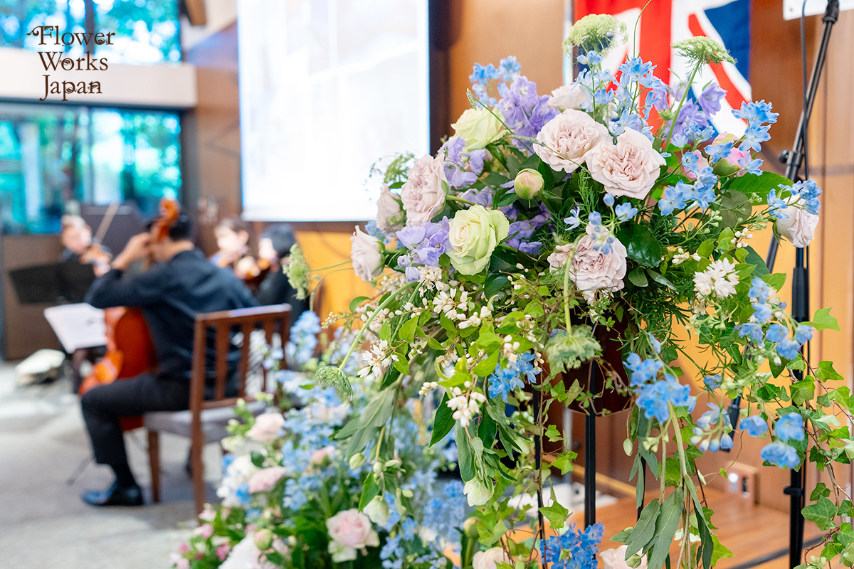 会場に彩を添える、フラワーワークスジャパン流イギリススタイルフラワーアレジメント