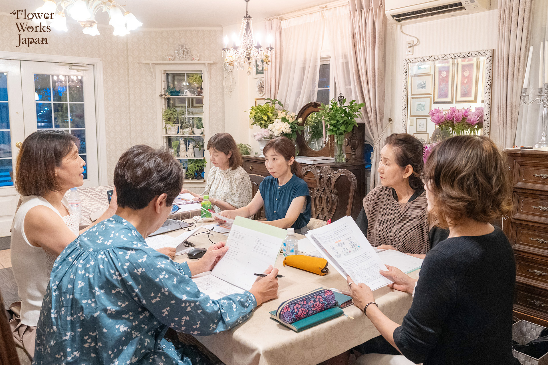 花仕事支援セミナー1では、ひとりひとりの望む夢に対して、現実に沿ったアドバイスを受けることができます。ディスカッションとプレゼンテーションを中心に行います。自分が思い描く夢をビジュアルにし、開業に向けて自分がやりたいことを整理していきます。