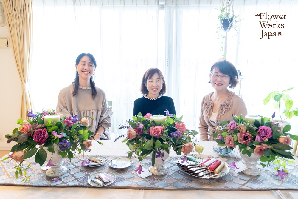 資格を取り、教室を開き、理事として仲間を支える姿は、まさにFWJの理念「花を仕事にする」を体現されています。